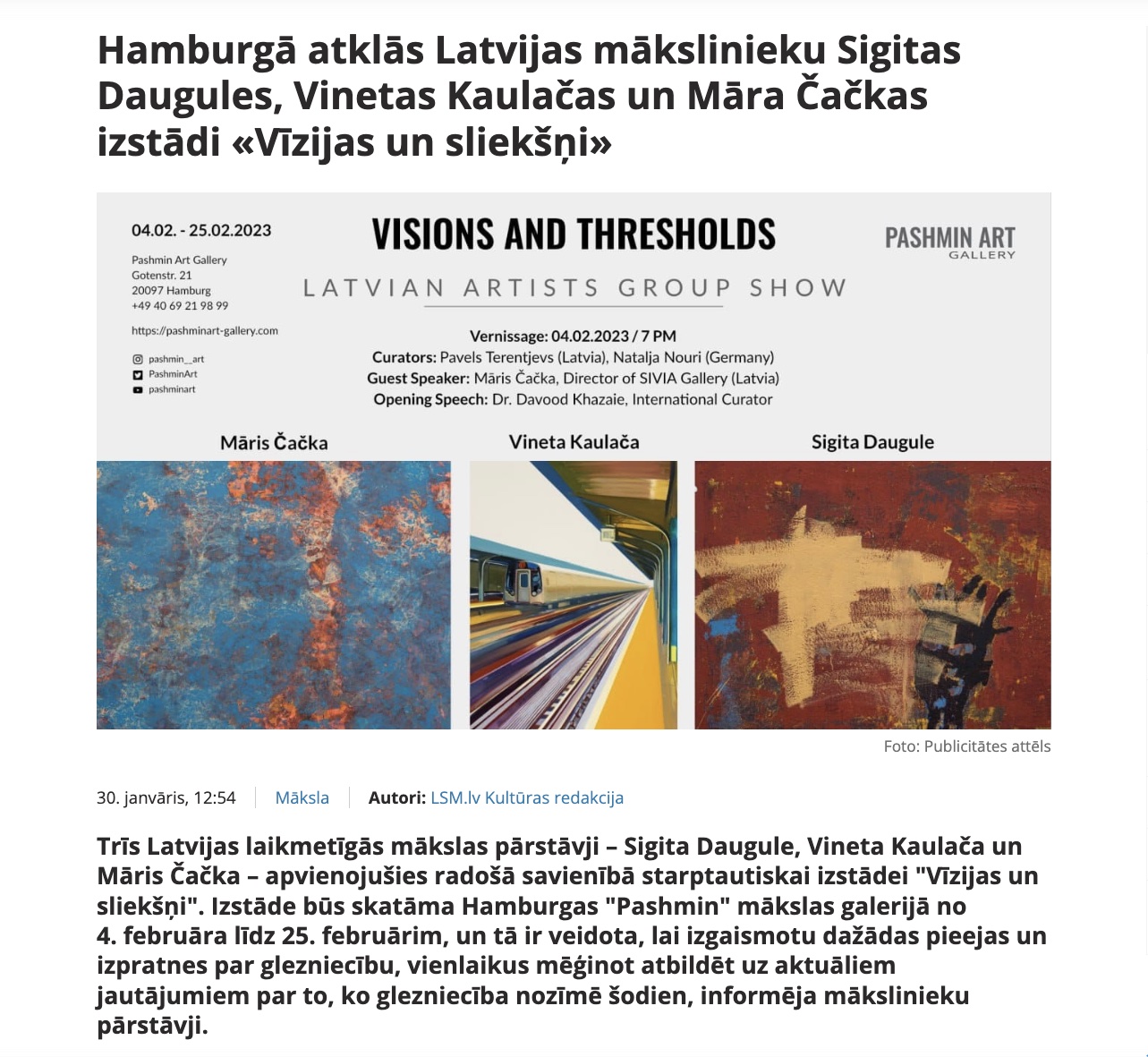 Latvijas mākslinieku starptautiskās izstādes “Vīzijas un sliekšņi”